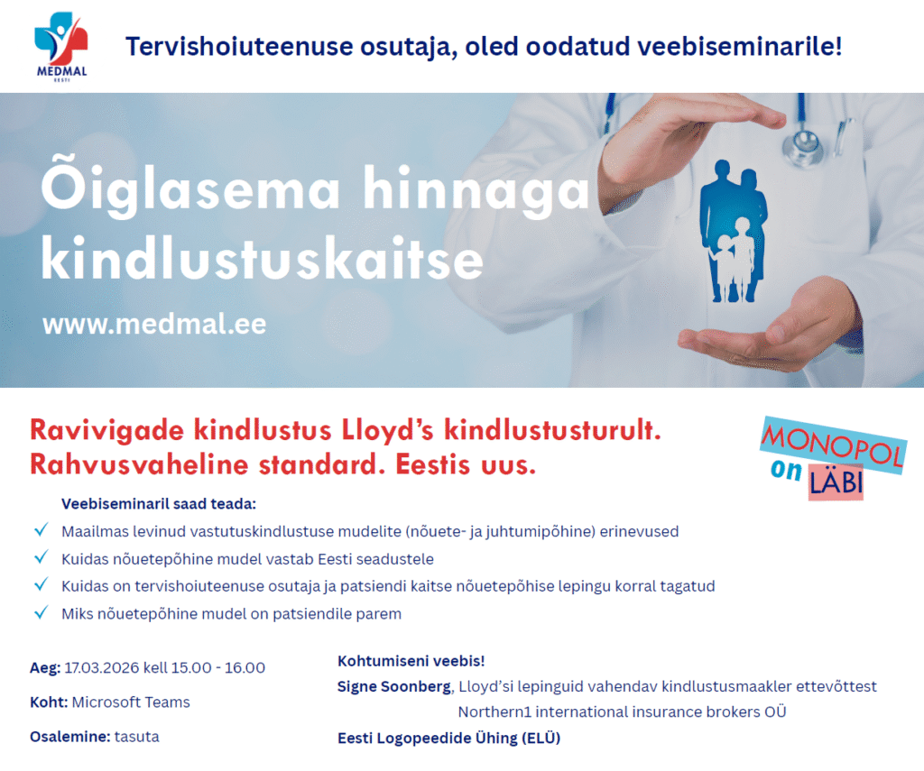 Vastutuskindlustuse teemaline veebiseminar tervishoiuteenuse pakkujatele