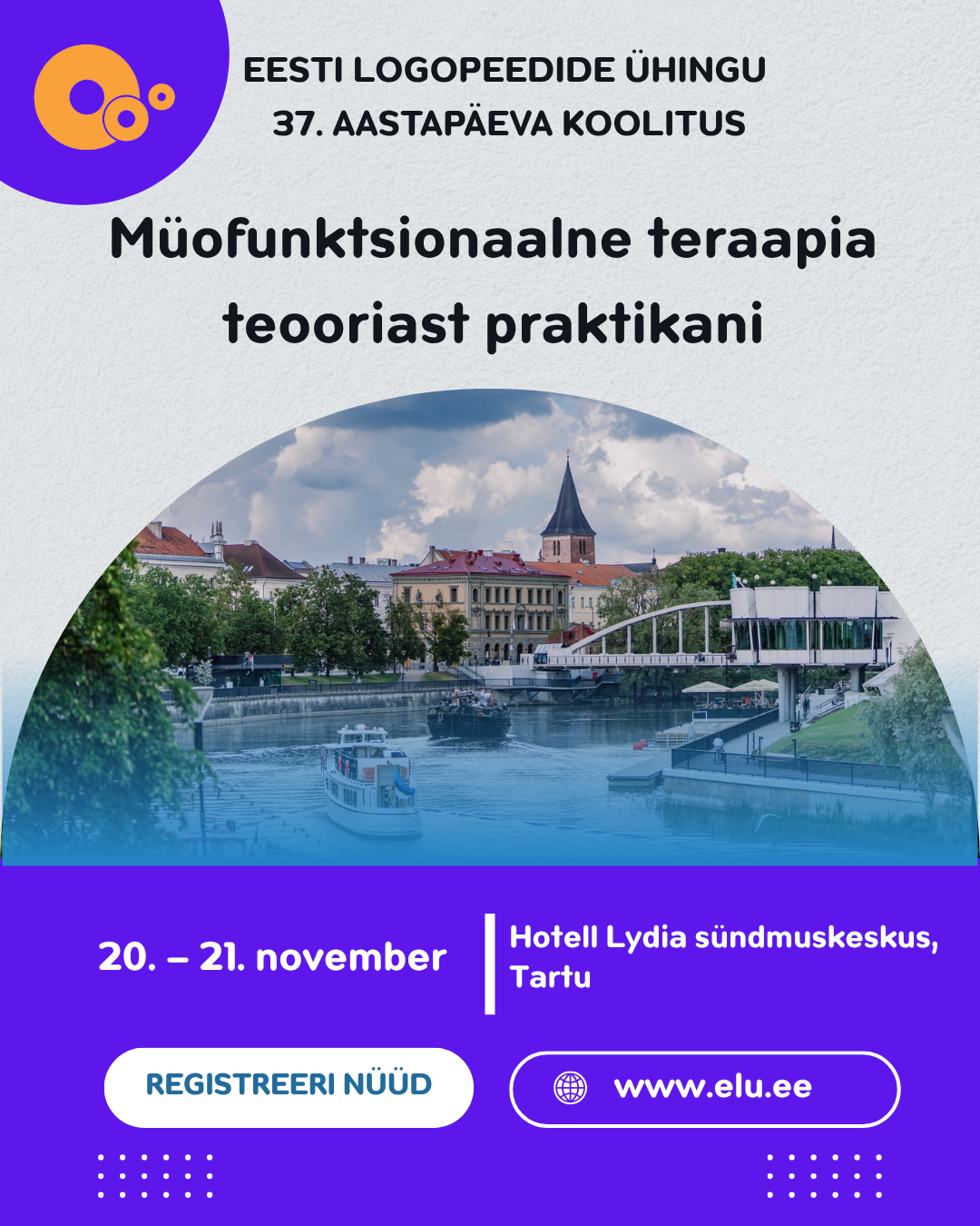 Praktiline töötuba logopeedidele, kes töötavad laste ja/või täiskasvanute neelamishäiretega. 9.–10. märtsil 2026. Korraldaja: Tracheostomy CEN. Vaata täpsemalt ja registreeri korraldaja kodulehel.