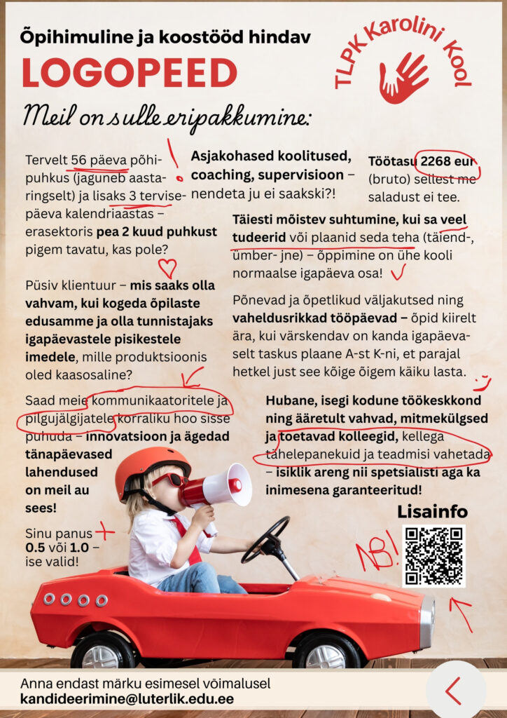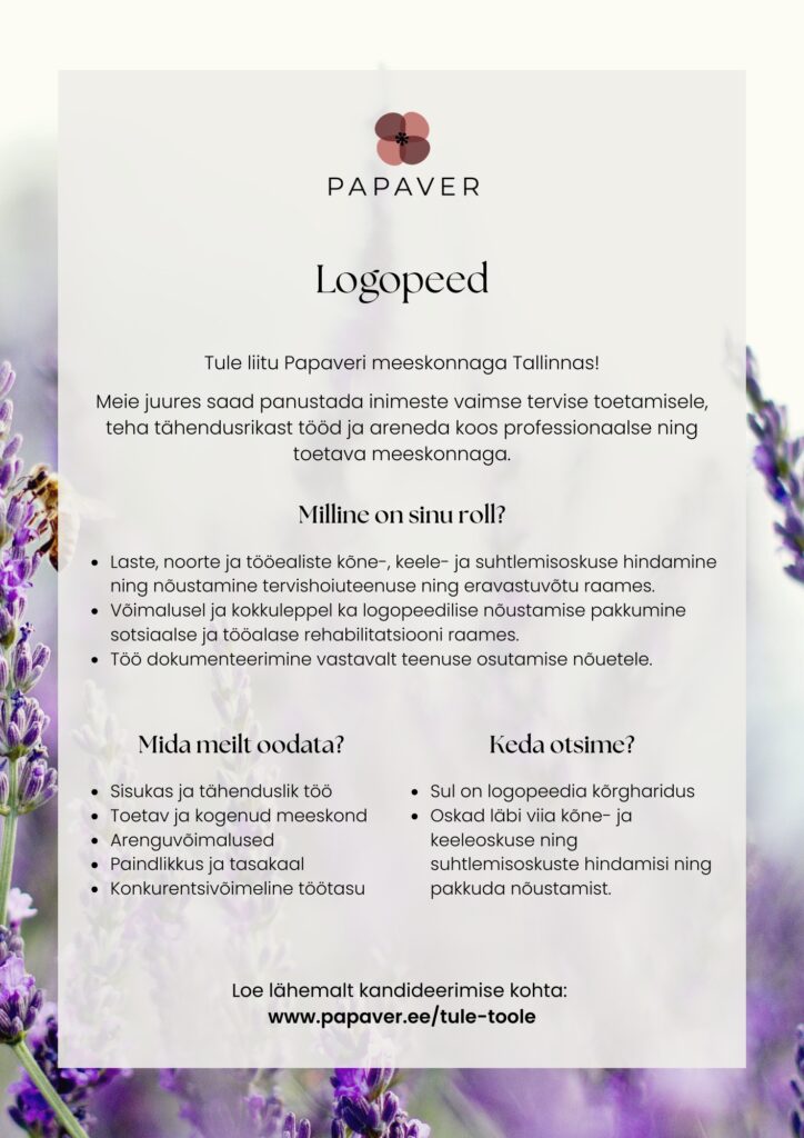 Tallinna Südalinna Kool ootab oma kollektiiviga liituma logopeedi.