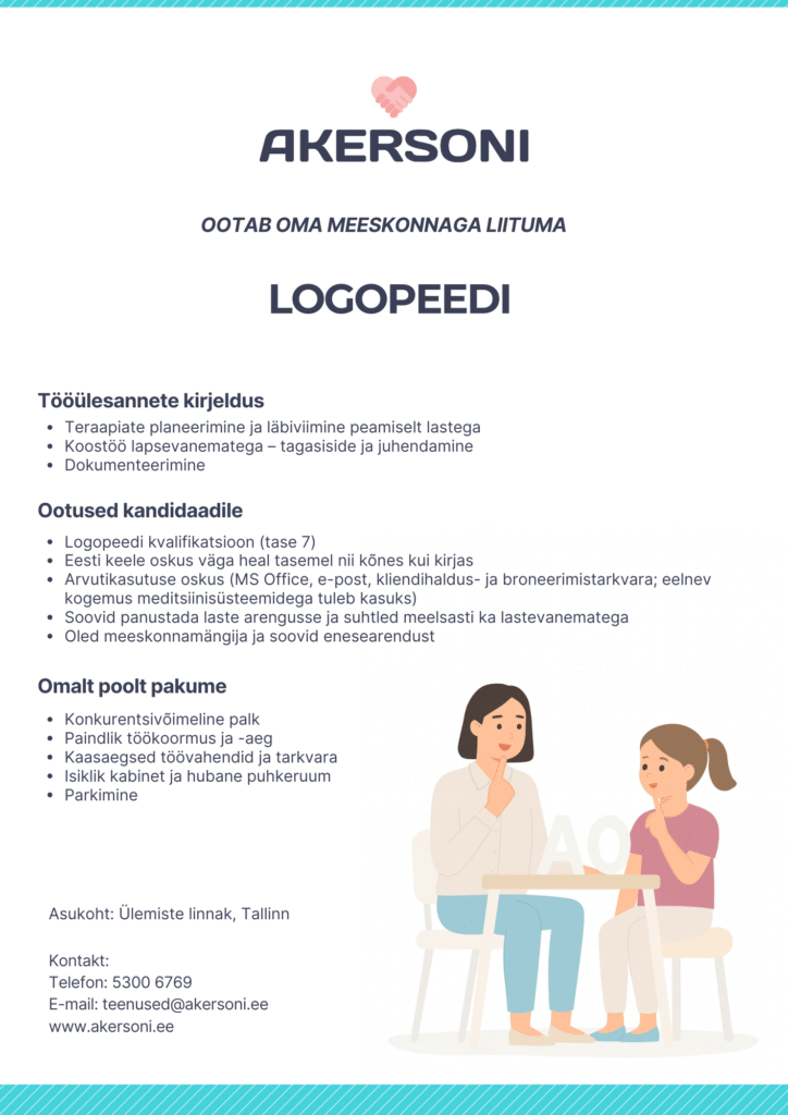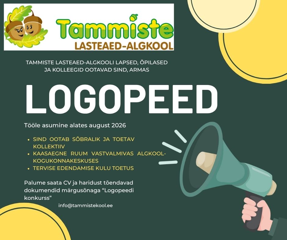 Tallinna Südalinna Kool ootab oma kollektiiviga liituma logopeedi.